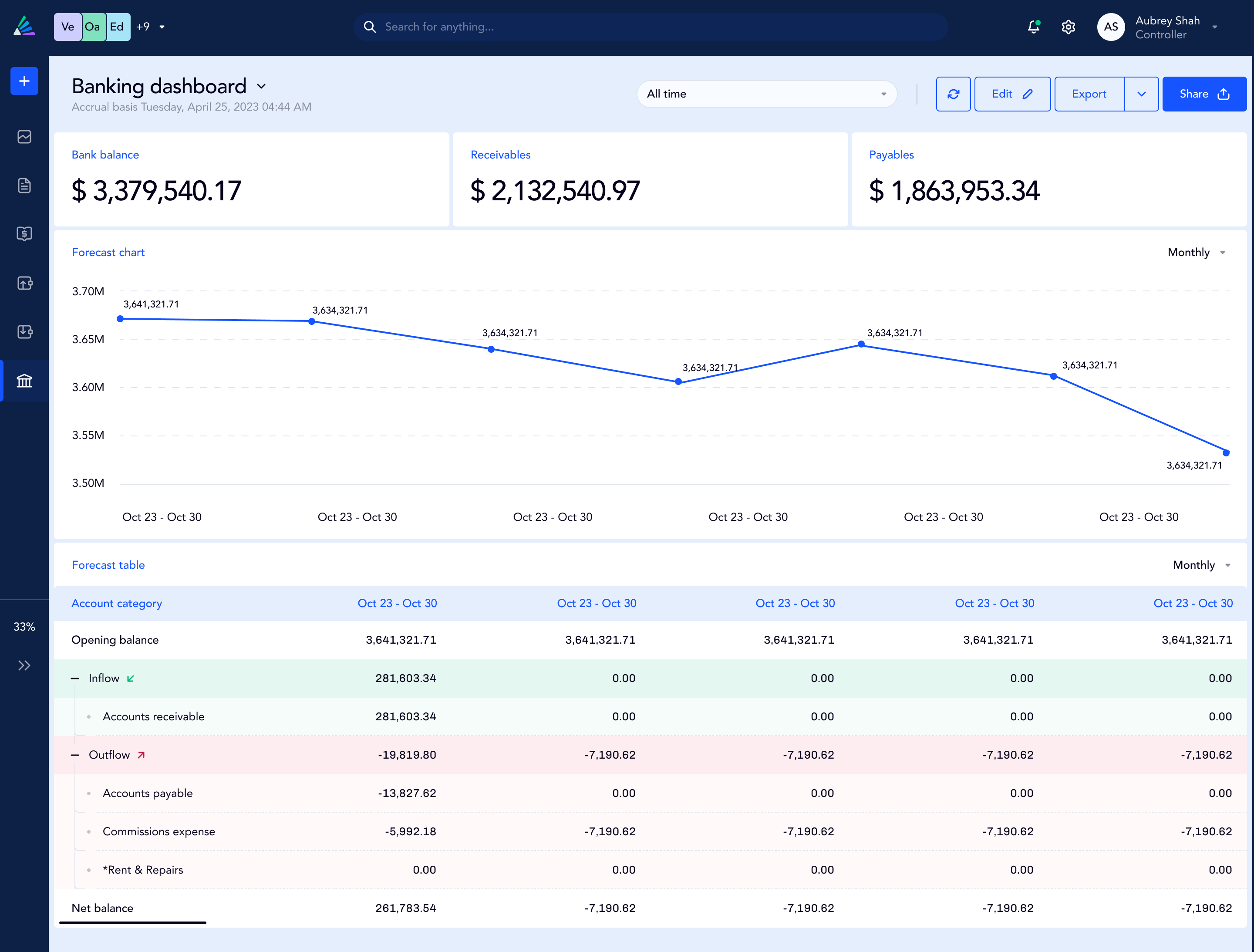 Stay ahead with accurate forecasts and models. Optimize cash flow by tracking trends in invoices, due dates, and vendor payments.