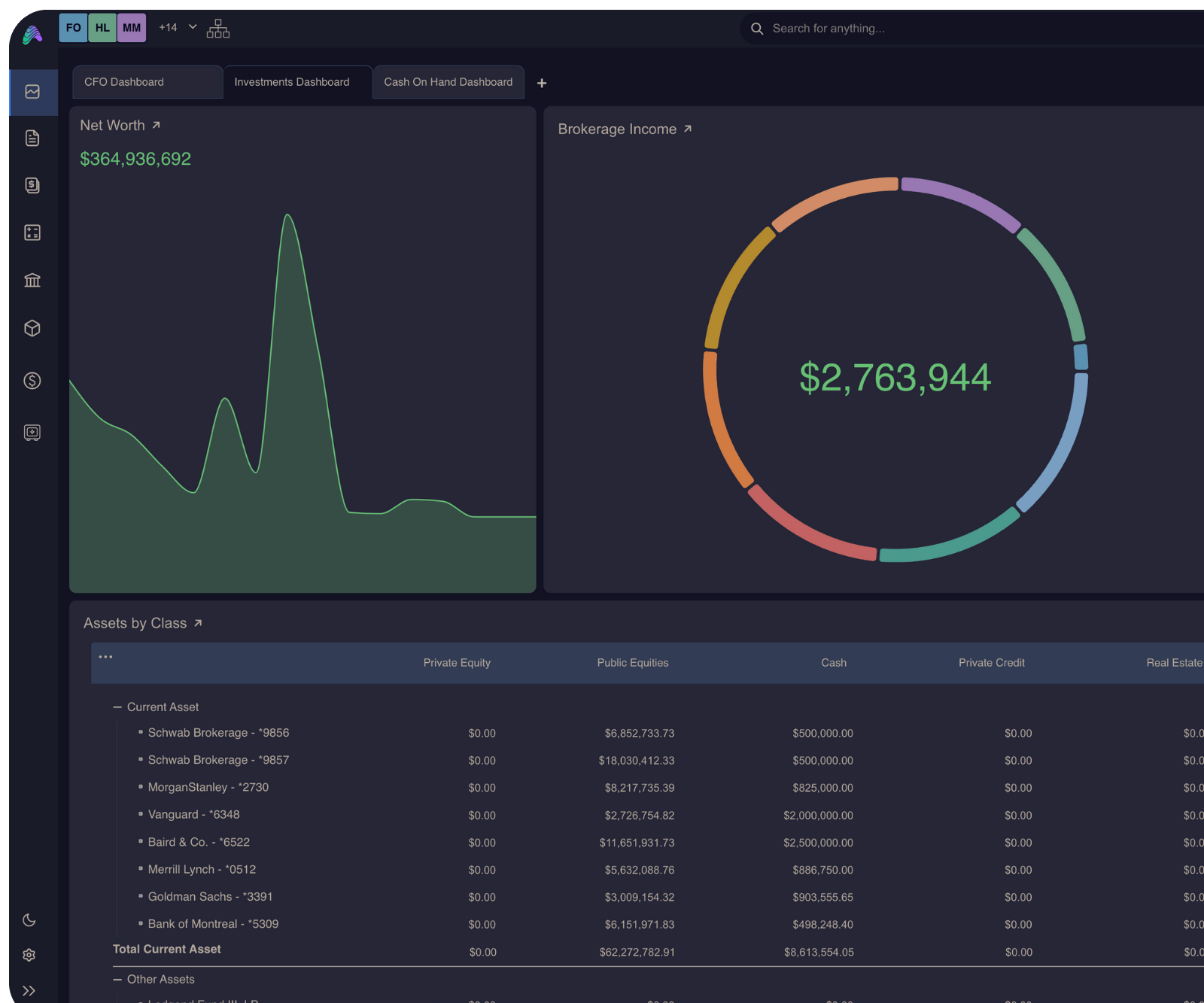 A next-generation wealth management platform for forward-thinking family offices, uniting public, private, and alternative assets in an intuitive interface designed for fast adoption.