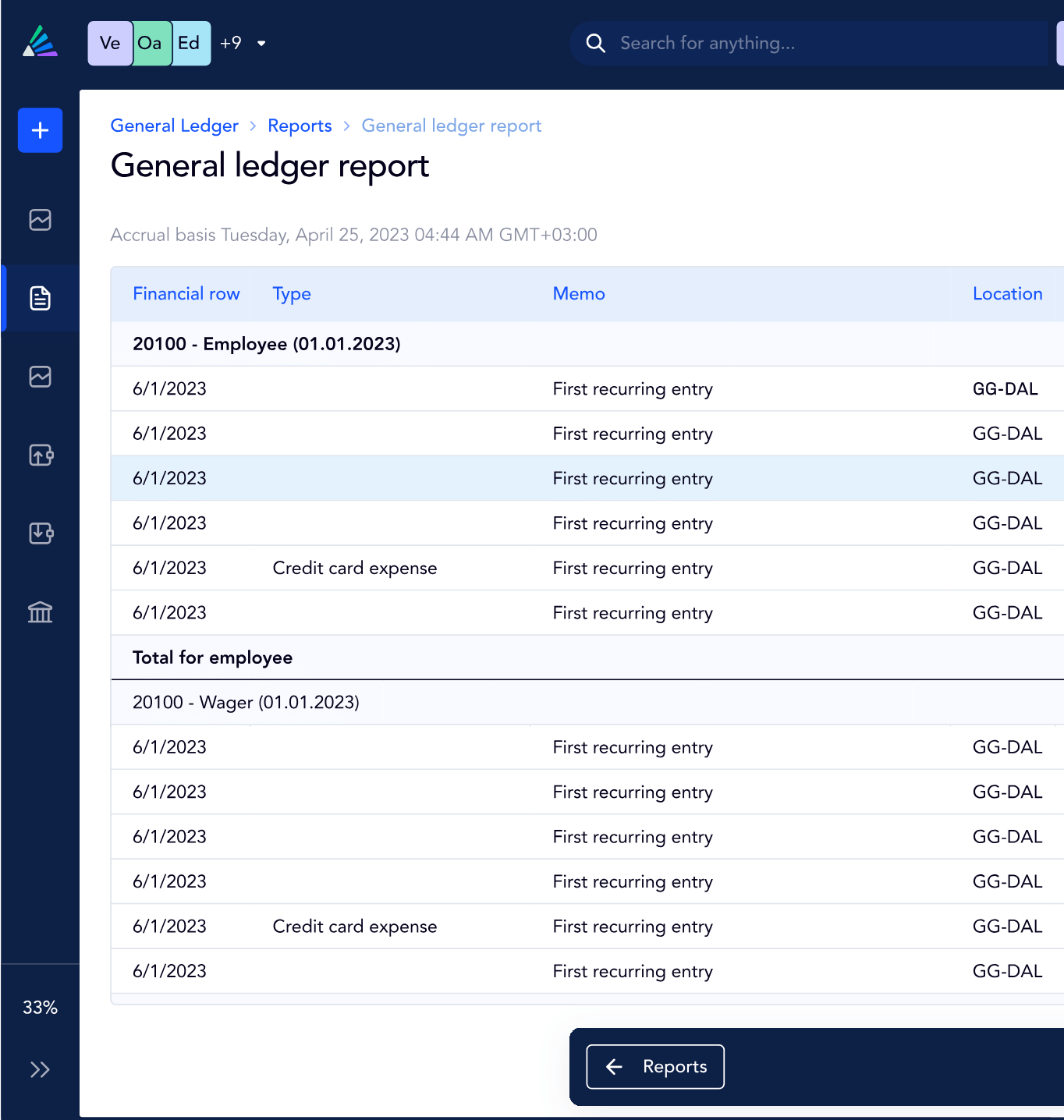 - General ledger reports with full drill-down capabilities
