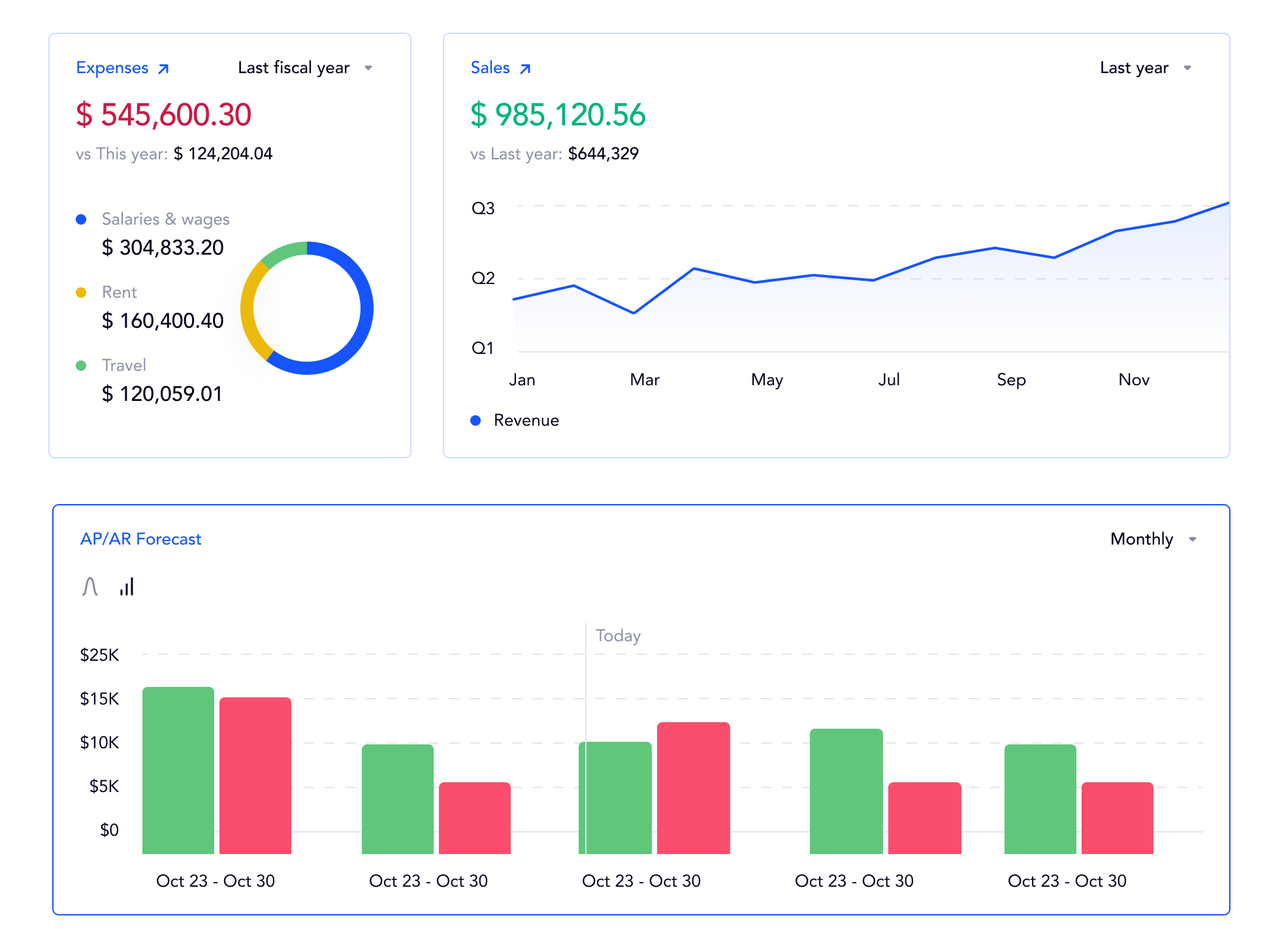 All reports support dimensional filters, date ranges, and comparison periods, making it easy to get both high-level and granular views of financial performance.
